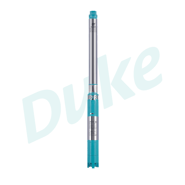 Duke’s DSP5M4RFE – Series pumps are 5″ Stainless Steel jacketed, Thermo-plastic Impellers, Borewell Submersible pumps suitable for clear water, high head applications. These Pumps are of Multistage Centrifugal types, accommodating Radial flow Impellers according to the required Head & Flow. The Pump & Motor are joined with Keyway coupling for easy serviceability. The precise design, materials combination, manufacturing process and stringent quality assurance procedures ensure high quality performance and durability of the pumps. These Pumps are coupled with Rigid, High-efficient, Water-filled, Rewindable submersible motors.